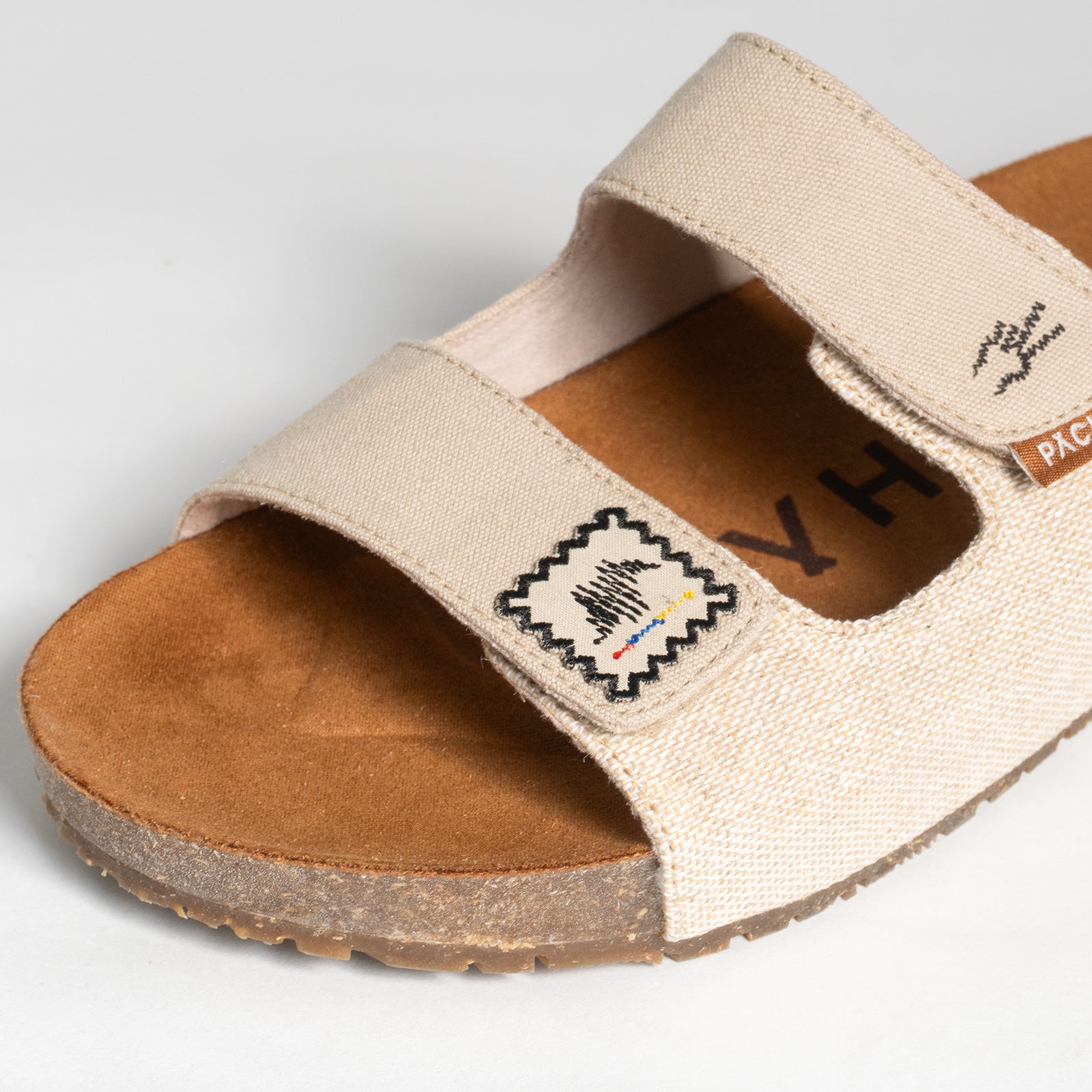 Para fabricar estas sandalias, nos inspiramos en la emoción de recorrer nuestro propio territorio. Queríamos que fueran ideales para viajar, con parches tipo mochilero que llevan a Colombia en cada puntada.